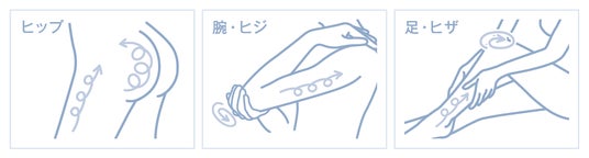 ヒップ、腕・ヒジ、足・ヒザに、直接くるくるマッサージ!