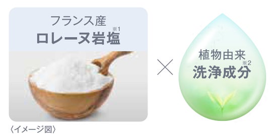 フランス産ロレーヌ岩塩※1のスクラブと植物由来洗浄成分※2が、