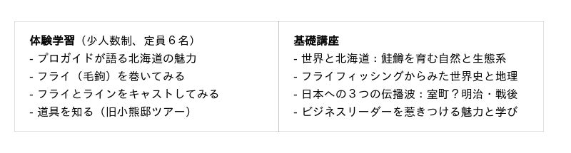 二人の共通の恩師(故人)は、北海道のフライフィッシング界を切り拓いてきたプロガイドでした。「このスポーツ・文化を次世代に伝えたい。北海道と世界を、もっとつなぎたい」。その遺志を受け継ぎ、私たちはビジネスとリベラルアーツを融合させたこのプログラムを企画しました。