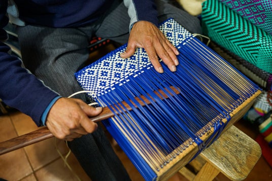 3.メルカドバッグを編む職人は男性であり、木型をベースに強い力で編んでいく。