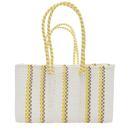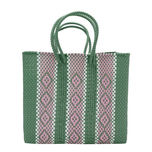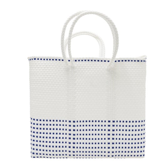 メルカドバッグは、メキシコ オアハカ州の手工芸品で、1つ1つ、現地の職人により丁寧に手で編まれています。水に強く、汚れをさっと拭き取ることができ、丈夫で自立する特徴があり、日本では様々な用途でオールシーズン使用できるかごバッグとして利用されています。