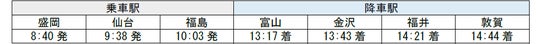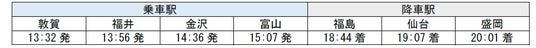 ※上記のほかに敦賀駅~黒部宇奈月温泉駅の各駅、郡山駅、一ノ関駅に停車します。