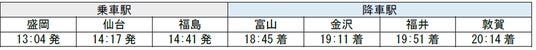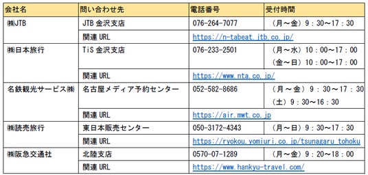 【列車名:「つながる北陸」号 運転区間:盛岡発敦賀行 旅行企画・実績会社および問い合わせ先】