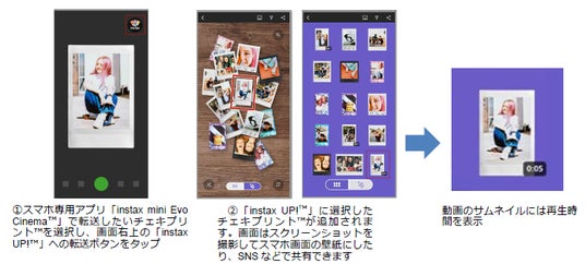(3) instax(TM)”チェキ”シリーズの製品アプリから動画や画像を転送可能