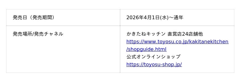 とよす株式会社(本社:大阪府池田市 社長:眞田 昌彦)は、百貨店を中心に展開しているブランド「かきたねキッチン」において、『かきたねポテト うましお味』『かきたねポテト サワークリームオニオン味』を2026年4月1日(水)から発売いたします。