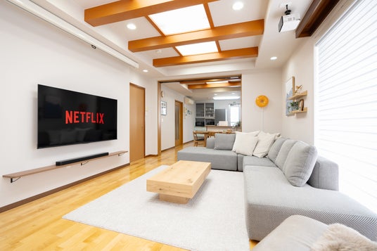 65インチ壁掛けNetflix対応TVとJBL Bluetoothスピーカー