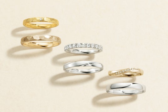 印象的なテクスチャーやフォルムで、唯一無二の存在感を目指した90種類以上のデザインに、お好みのリング幅・素材・ダイヤモンドの有無等を組み合わせ、細部までこだわりカスタマイズできるのが特徴。また、リングの内側は、デザインごとに最も心地よいバランスをコンマ単位で追求。日常に馴染むなめらかな着け心地を楽しんでいただけます。