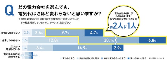 また、全体の約2人に1人が、電力会社の違いを十分に理解していないまま「電気代はさほど変わらないと思う」と回答しています。