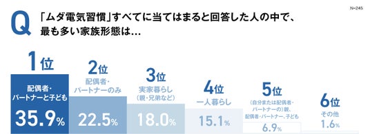 その結果、一人暮らしや二人暮らし、実家暮らしなどと比べ、配偶者・パートナーと子どもが同居するファミリー世帯の割合が最も高く、全体の35.9%を占め、いわばチリも積もれば大きな負担になる“チリツモ電気ファミリー”が存在する実態が見えてきました。