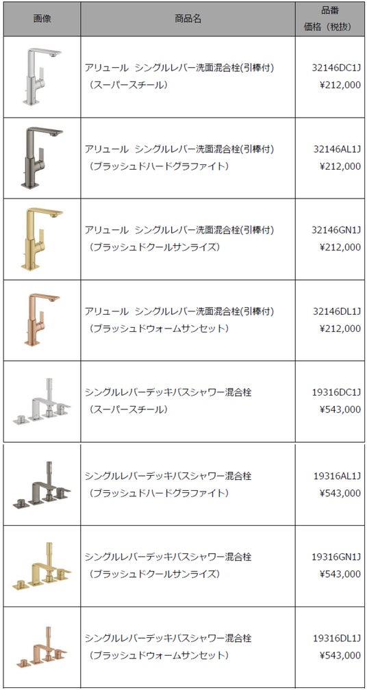 グローバルで総合的な水栓金具の代表ブランドであるGROHEは、プレミアムサブブランドであるGROHE SPAのALLURE(アリュール)シリーズよりPVDカラー4色を新発売いたします。