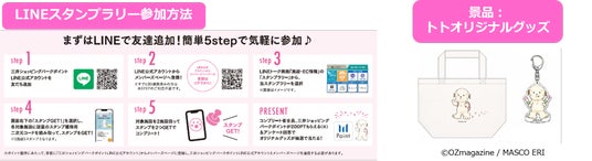 COREDO室町・COREDO日本橋・銀座ベルビア館のうち、2施設を巡ってスタンプをGETすると、全員に三井ショッピングパークポイントを200ポイントプレゼント。さらに、コンプリートいただき、アンケートに回答していただいた方の中から抽選で200名様にOZmagazine公式キャラクター・トトのかわいいグッズも当たります。