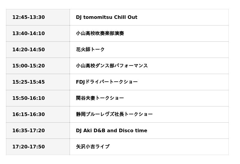 富士スピードウェイのイベント広場では、今年も幅広い世代が楽しめる体験型コンテンツを多数ご用意しております。日本最高峰のフォーミュラマシン「SUPER FORMULA」の搭乗体験や、若手ドライバーによる「FORMULA DRIFT JAPAN」スペシャルデモランなど、スピードウェイならではの迫力あるプログラムが登場。さらに、絢爛豪華なデコトラの展示や、現場で活躍する“はたらくクルマ”の搭乗体験も実施いたします。会場内では、E-BIKEで楽しむお花見サイクリングや、最新ロードバイクの試乗体験、地元静岡の名物グルメが集結する「屋台グルメフェスティバル」も開催。オフィシャルステージでは、ベテランDJによるプレイや花火師によるトークセッションなど、開演まで会場を盛り上げます。●サーキットでのプログラム