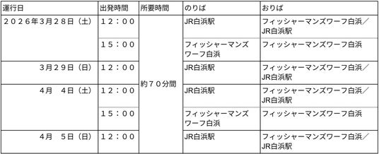 - 運行日 4日間 計6便2026年3月28日(土)、29日(日)、4月4日(土)、5日(日)
