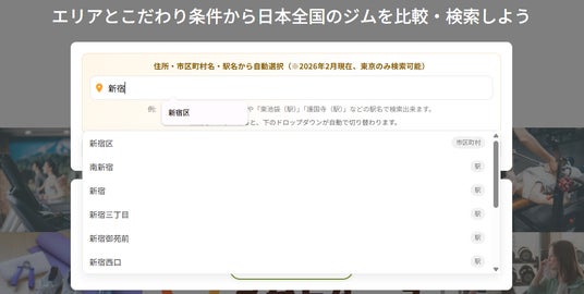 横断的に比較検索することで自分の希望条件に合うフィットネス施設をスムーズに発見。東京都から掲載を開始し、順次全国を見据えてエリア拡大へ。