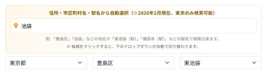 もちろん、駅名を直接入力したり、「新宿区」のように広い範囲で検索も可能です。
