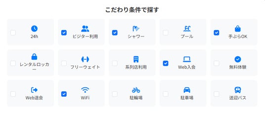 ジム検索サイト「ジムさがーす」トップページ こだわり条件選択画面