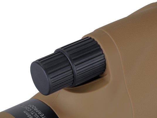 粗動と微動の2つの速度でピントを合わせられるデュアルフォーカス・ピントリングを搭載(減速比1:9)。粗動で素早くピントを近づけた後、微動でピント位置を精密に追い込みます。鳥の羽などのディテールを観察する場合や、撮影における精密なピント合わせがたいへんスムーズです。