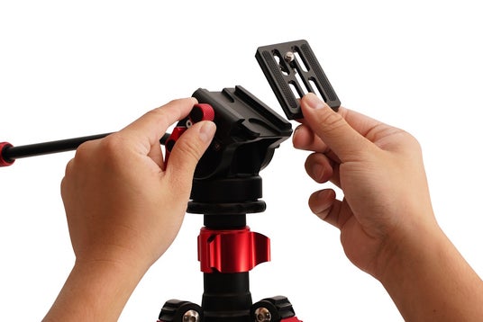 カメラの着脱が素早く簡単に行えるクイックシューを搭載。一般的な薄型プレート規格に対応しています。