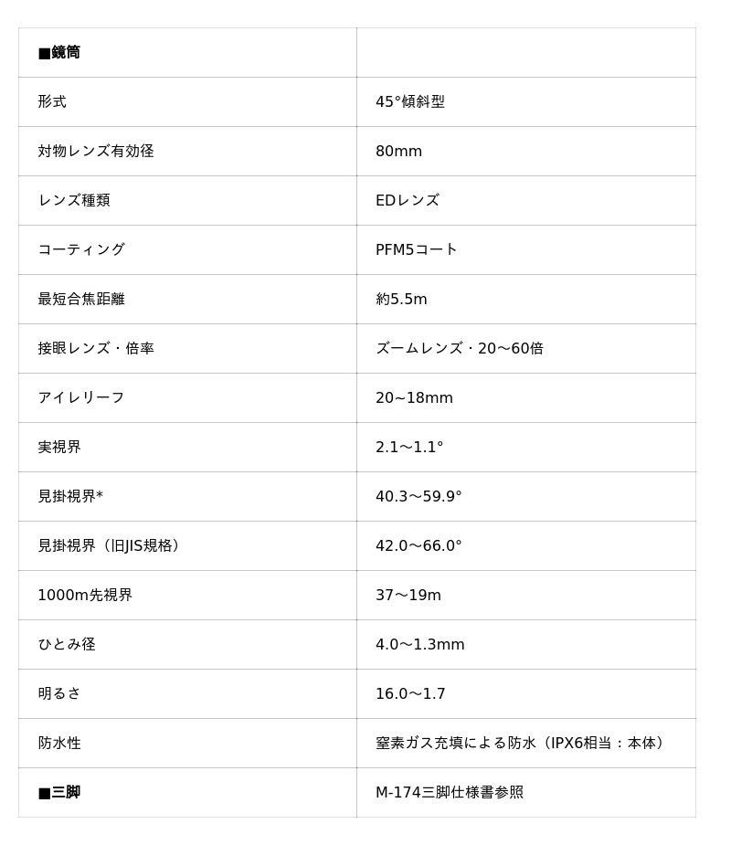 「ジオマIII ED80 ZOOM 三脚M-174セット」 仕様