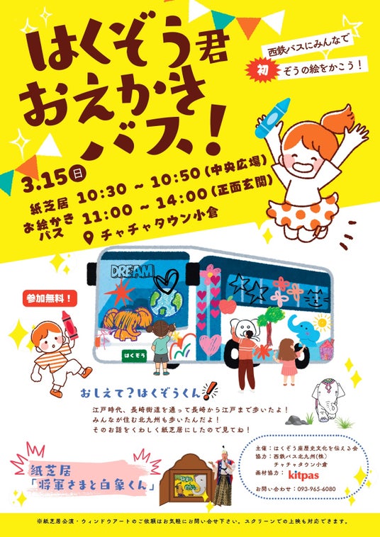 西鉄バス北九州株式会社は、「はくぞう座歴史文化を伝える会」主催ので「はくぞう君おえかきバス!」イベントを2026年3月15日(日)に開催します。