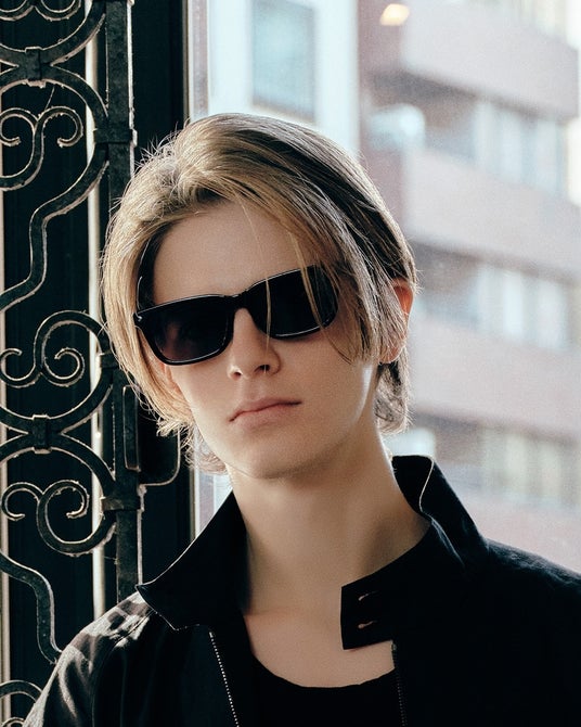 ボリュームのあるアセテート生地でリッチな印象に。アイウェアが主役のコーディネートを楽しみたい方へおすすめ。