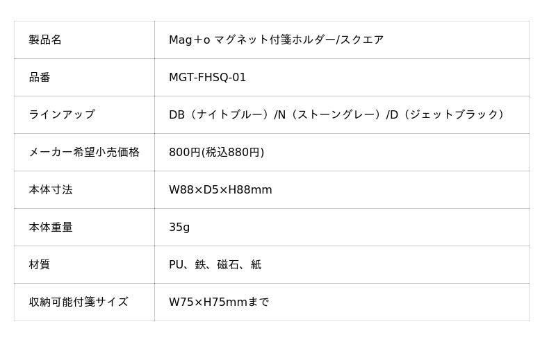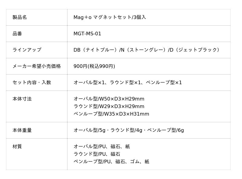 Mag+o(マグト)シリーズとはMag+o(マグト)シリーズは、磁石を使用したスマートな文具シリーズです。無駄のないシンプルなデザインと磁石の特長を活かした機能で、日常使いからビジネスシーンまで馴染みやすい文具に仕上げました。Mag+oが、現代のワークスタイルに、ピタッと寄り添います。