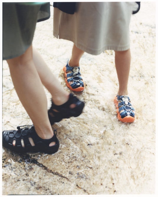 KEENとスノーピークは、持続可能なモノづくりをする姿勢や、製品を通じて自然を楽しむという想いが共通するブランドです。その2つのブランドが出会い、「より多くの方に自然と触れ合う機会を届けたい」という想いのもと、今回、初のコラボレーションが実現。街からキャンプフィールドまでシームレスに行き来できる設計で、日常と自然を軽やかに結び、自然とのつながりをより身近に感じられる一足が誕生しました。