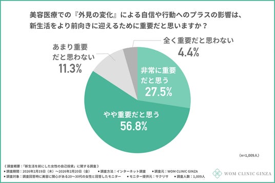 そこで今回、WOM CLINIC GINZA(https://wom-clinic.com/)は、美容に関心がある20~30代の女性を対象に、「新生活を前にした女性の自己投資」に関する調査を行いました。