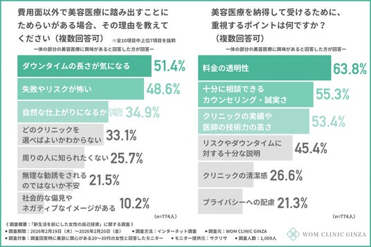 今回、「新生活を前にした女性の自己投資」に関する調査を実施したWOM CLINIC GINZA(https://wom-clinic.com/)は、患者様目線でのカウンセリング、適正価格でのご案内、安心いただける術後フォローアップ体制を意識して日々診療しています。