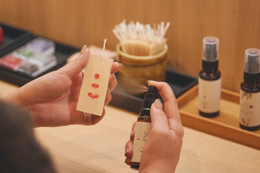 アロマルーム「香文室(こうぶんしつ)」では、地元大分県中津市の「久恒山林」がプロデュースする「六月八日」ブランドのアロマスプレーで、オリジナルの栞づくり体験ができます。