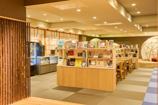 2階のラウンジ「一福(いっぷく)」は、お飲み物やお菓子を自由にお愉しみいただけるオールインクルーシブ。読書や会話を楽しんだり、何もせずゆっくり過ごしたり。キッズスペースやライブラリーも併設しており、ご家族皆さまでお客さまペースの時間をお過ごしいただけます。