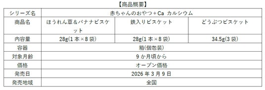 「赤ちゃんのおやつ+Caカルシウム」新アイテム追加・リニューアル発売