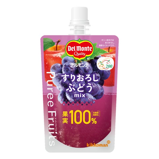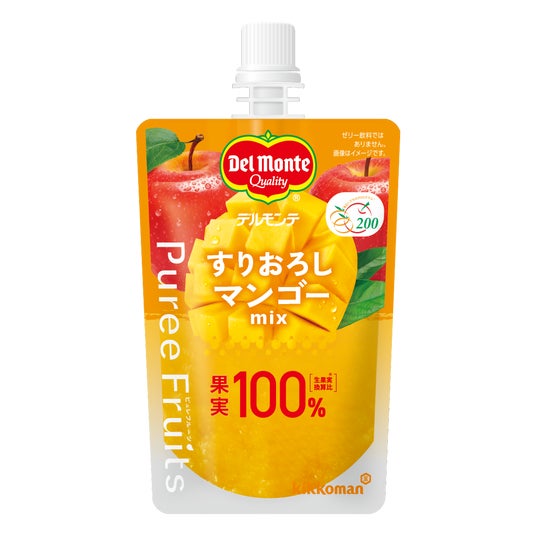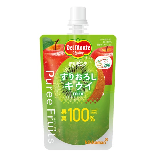「ピュレフルーツ」シリーズは、果実100%(生果実換算比)(*1)で、1袋で果物摂取目標量(1日200g)(*2)の1/2以上の果実をとることができるパウチ入りのすりおろし果実です。朝食や昼食はもちろん、おやつやデザートなど、好きな時に好きな場所で、気軽にすりおろし果実を楽しむことができます。