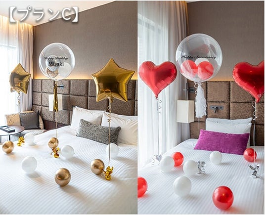 お部屋のデザインに合わせた色味のバルーンや、オリジナルメッセージを入れた特別なバルーンもご用意。大切なパートナーやご友人、ご家族とのお誕生日や記念日、女子会など特別な日のホテルステイをより楽しんでいただけるオプションプランで、思い出に残る1日をお過ごしください。