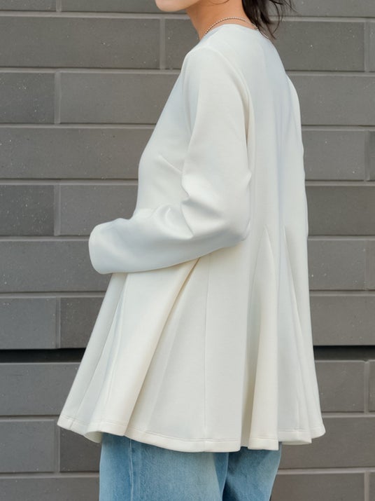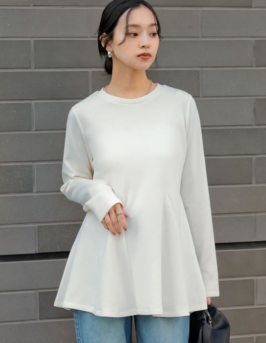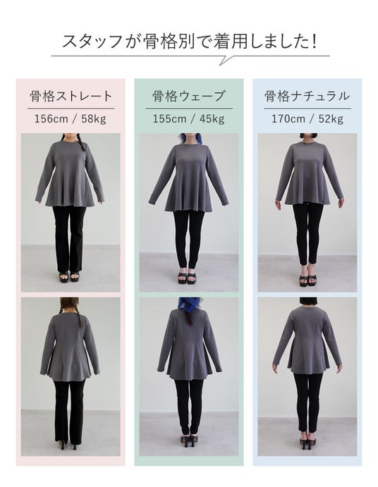商品名: [yukiコラボ][楽天ROOMコラボ][全骨格きれい見え][UVカット]マシュマロポンチ裾切り替えフレアペプラムトップス