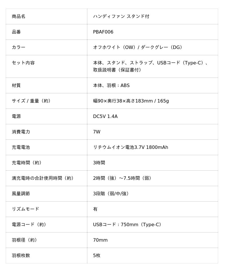 「ハンディファン スタンド付」PBAF006