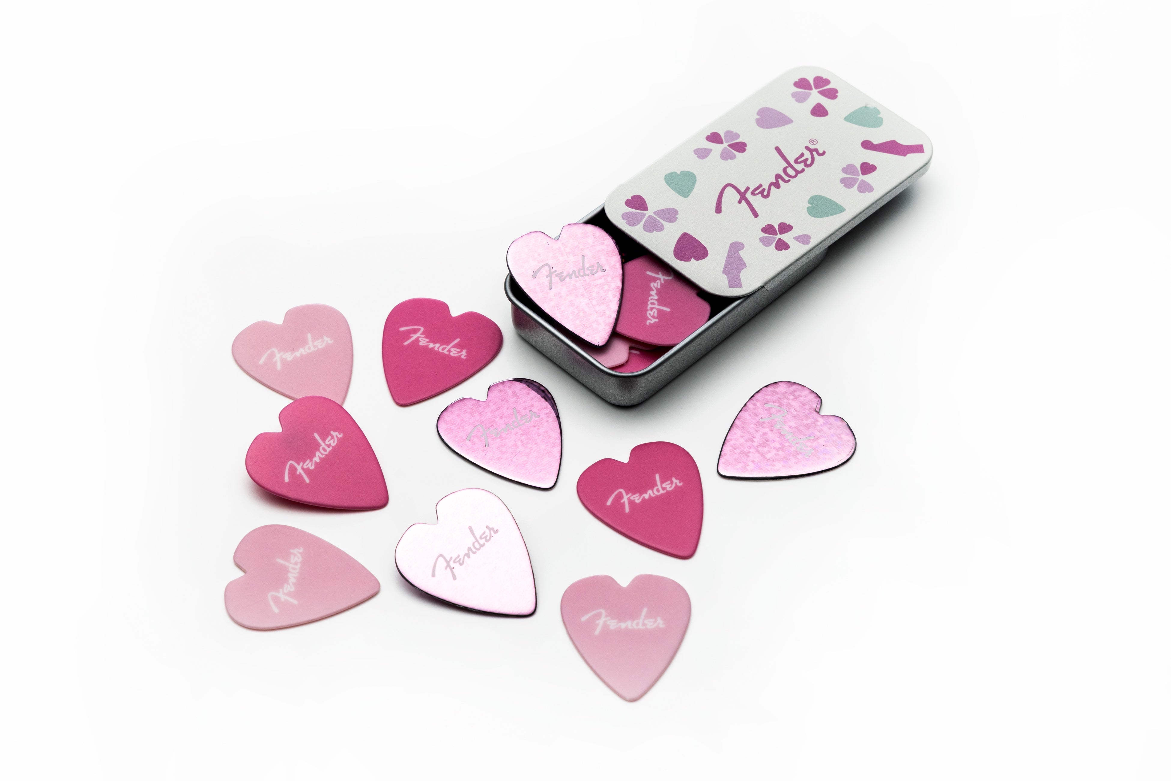 桜をモチーフにした限定デザインのギターピック『Fender(R) Tokyo Limited Sakura Collection Picks』がFender Flagship Tokyoおよびフェンダー公式オンラインショップ限定で発売されます。プレゼントキャンペーンで配布されるピックとは異なるカラーとなっており、フェンダーの伝統的な351シェイプを桜の花びらの形状にアレンジされています。5枚を組み合わせると一輪の桜になる、遊び心あふれるデザインです。また、351ピック同様、演奏性を高めるフォルムにもなっています。3輪の異なるピンクの花となる合計15枚のピックが、特別デザインのスライド缶に収められています。