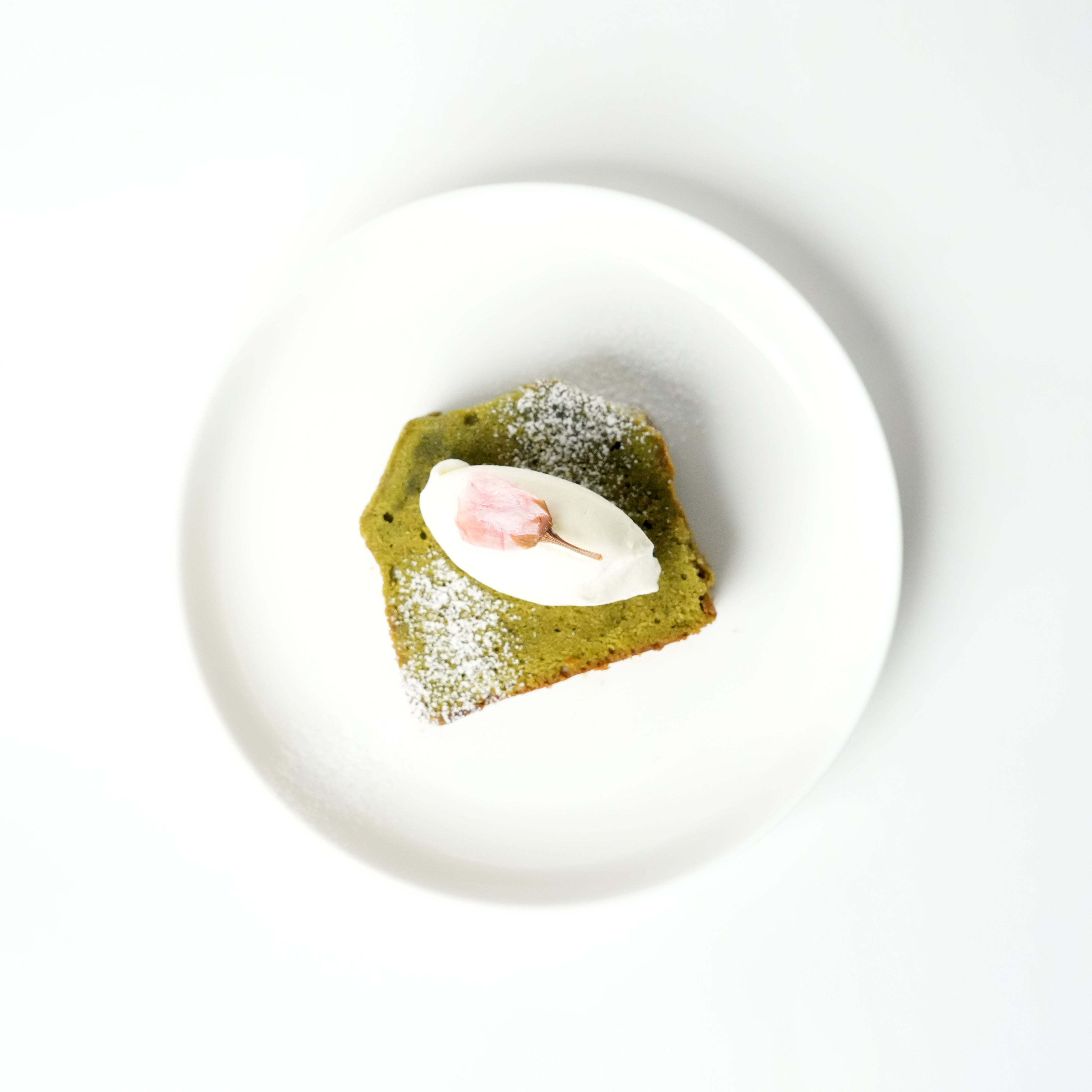商品名:MATCHA POUND CAKE w/ salted sakura flower & whipped cream