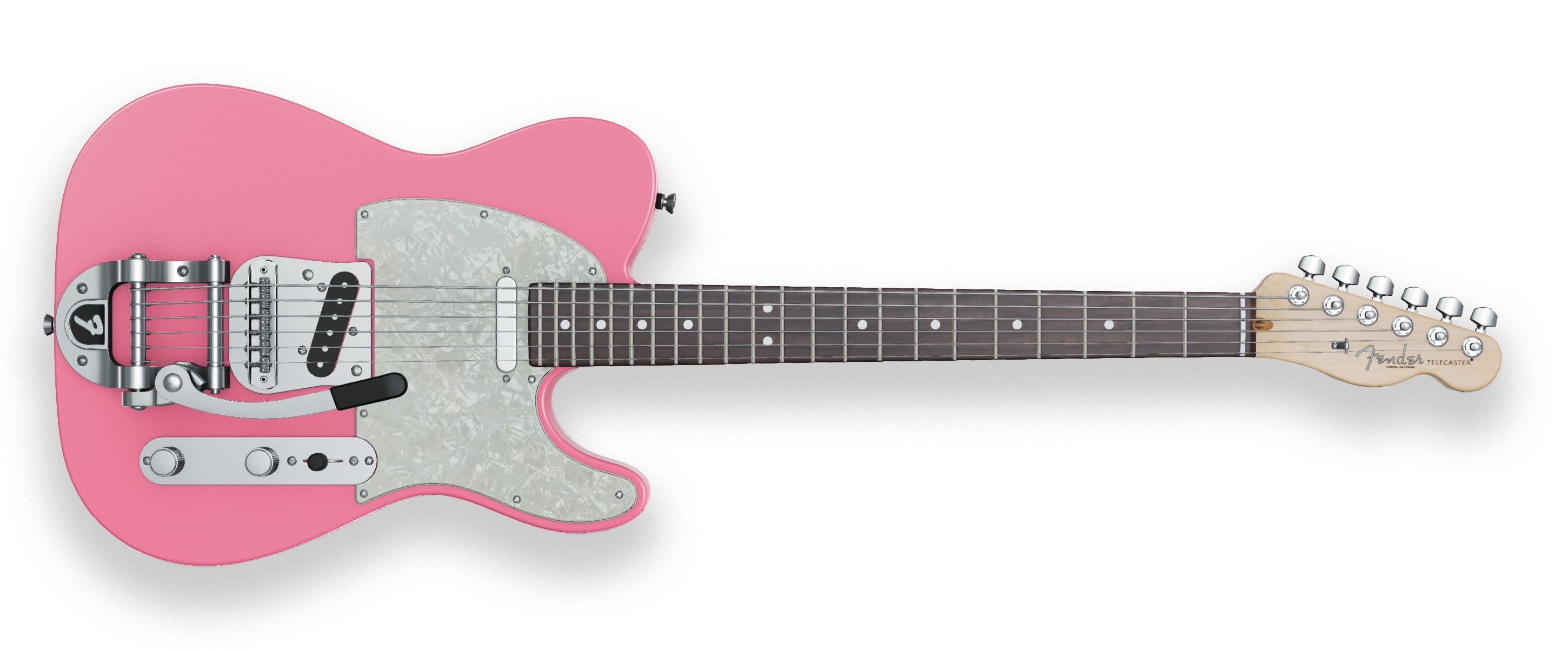鮮やかなBubble Gumカラーのボディに、ローズウッド指板とメイプルネックを採用。Bigsby(R) B5ヴィブラートテイルピースを装備し、豊かなトーンと繊細なヴィブラートを生み出します。V-Mod Telecaster(R)シングルコイルピックアップにより、ヴィンテージ感と歯切れの良さを兼ね備えたサウンドを実現しています。