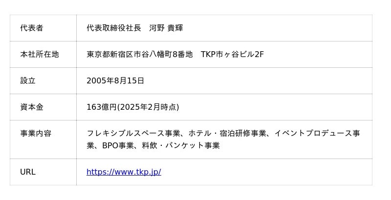 【株式会社ティーケーピー 会社概要】