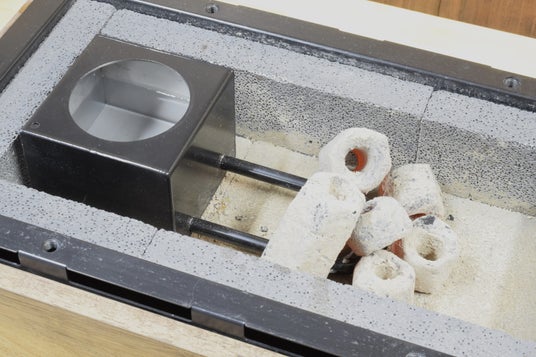 水を入れてパイプに炭火を置き、しばらくすると湯が吹き出してきます。