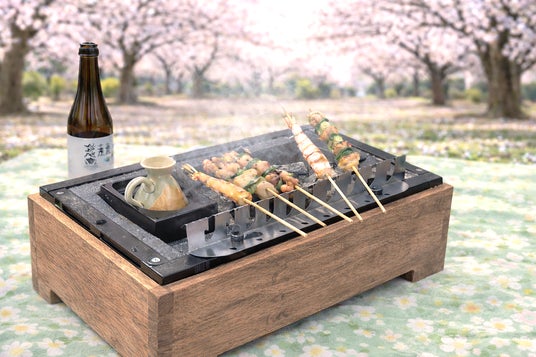 焼き鳥を肴に日本酒を熱燗で 回りすぎない串スタンド【串ピタ】を使用
