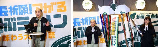 投資家・桐谷広人さんが“かぶのくす玉”で祝福、育てたかぶを豪快にトッピングした「成長祈願!アがるかぶラーメン」の限定販売も開始!