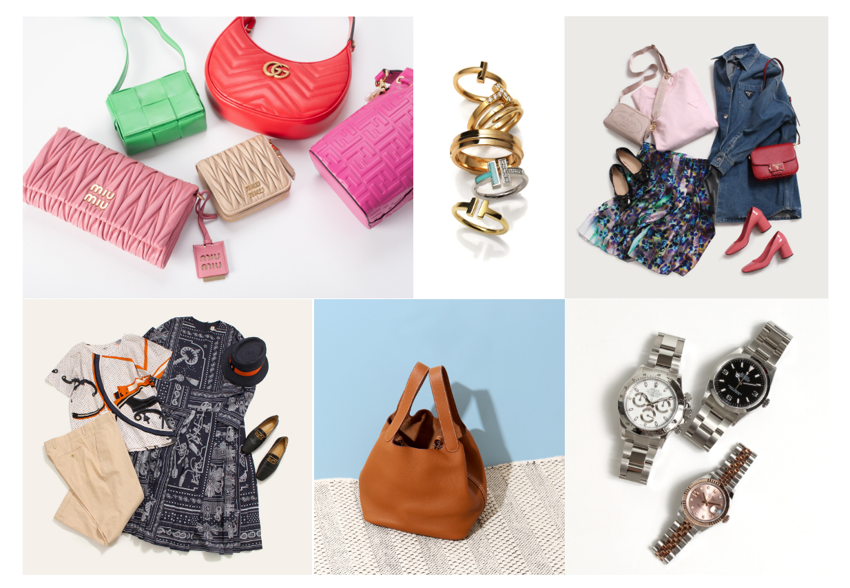 取扱ブランドの一例:エルメス、シャネル、ルイヴィトン、プラダ、グッチ、セリーヌ、カルティエ、ロレックス、セイコーMIUMIU、ボッテガヴェネタ、コーチ、マイケルコースカシオ(Gショック) など