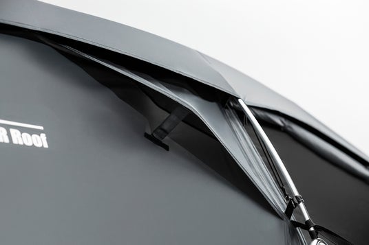 巻き上げたキャノピーをさらにバックルで止めることができる「ハイビューシステム」を採用。テント内からの景色が大きく広がるだけでなく、天井の高さとリビングスペースも確保できます。