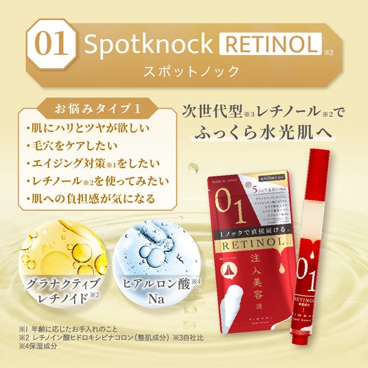 次世代型※2のレチノール※3はビタミンAの1種で、肌にハリ・ツヤを与え、なめらかな印象へ導きます。年齢に応じたお手入れとして取り入れていただけます。