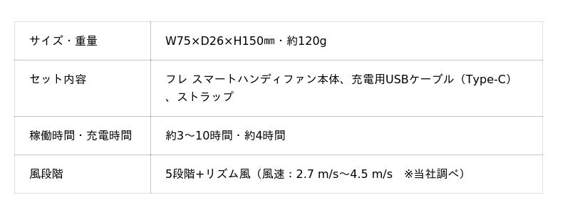 さらに、「フレ ハンディファン」シリーズの中で最長となる、最大約10時間の連続使用を実現。