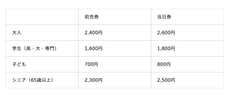当日券 :3月27日(金) 00:00 ~ 6月28日(日)16:30まで