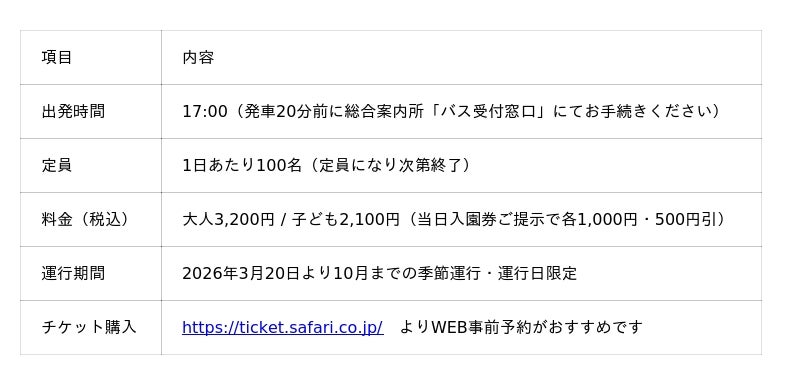 3. 夕暮れサファリバスツアー 2026年シーズン運行開始