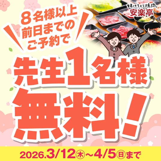 焼肉レストラン安楽亭(所在地:埼玉県さいたま市)は、2026年3月12日(木)~4月5日(日)の期間中、春休みの仲間・家族・部活利用等を応援する「春のみんなで焼肉キャンペーン」を実施いたします。